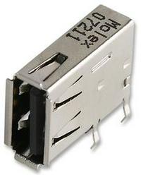 Conn USB 2.0 Type A RCP 4 POS 1.4mm Solder RA Thru-Hole 4 Terminal 1 Port Tray